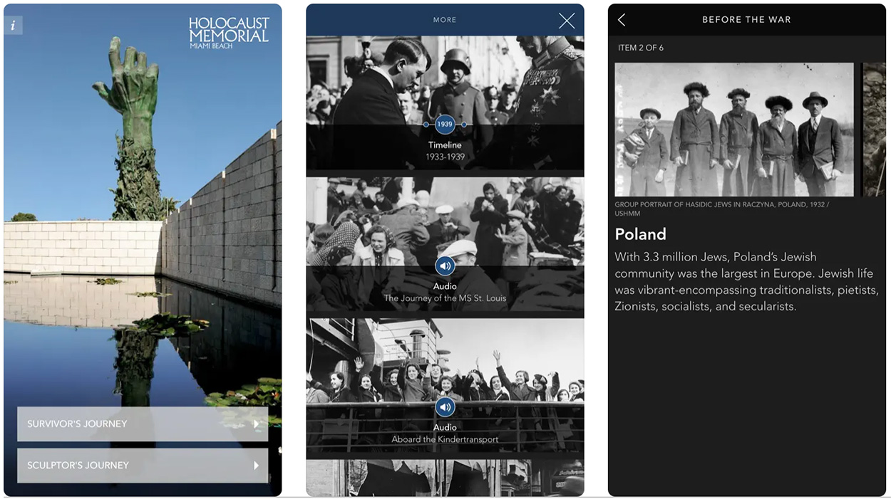 As you explore this iconic Holocaust Memorial and some of the most essential elements of Holocaust history, the app uses iBeacon triggers to automatically plays video and audio selections that complement and personalize the Holocaust Memorial’s historical displays and sculptures. These media elements prominently feature the voices and recollections of local Miami based Holocaust survivors—making for an especially engaging and compelling experience. Further content includes slideshows, interactive maps, timelines, and additional audio and video.